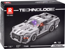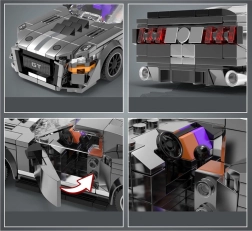 This technical building set will delight fans of classic American motoring. The model, inspired by the legendary 1960s GT, stands out with its muscular bodywork, low stance, and pronounced wheel arches that give it a racing character. Two white stripes running from the hood over the roof to the rear underscore the authentic racing style.