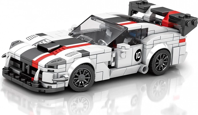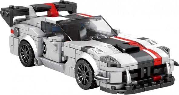 Build an iconic supercar model inspired by an American classic. The set includes 419 pieces, a white body with a black‑red racing stripe, and a striking rear spoiler. Ideal for fans of technic building sets and car enthusiasts aged 14+.