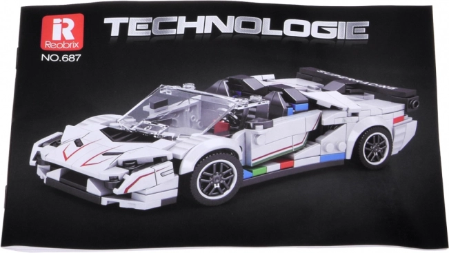 This technical building set will delight anyone who loves fast cars and intricate constructions. The white convertible with aggressive lines and a prominent rear wing looks like a true supercar — perfect for a display case or a collector’s shelf.