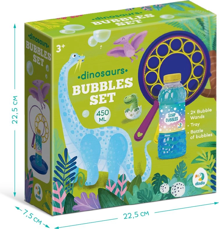 Spin up the fun with bubbles! This DODO bubble set with a 450 ml volume brings endless joy for kids and adults alike. It includes two wands – one for extra large bubbles and another for lots of tiny bubbles. Even with a small amount of solution, you can create amazing bubbles full of color and shine.