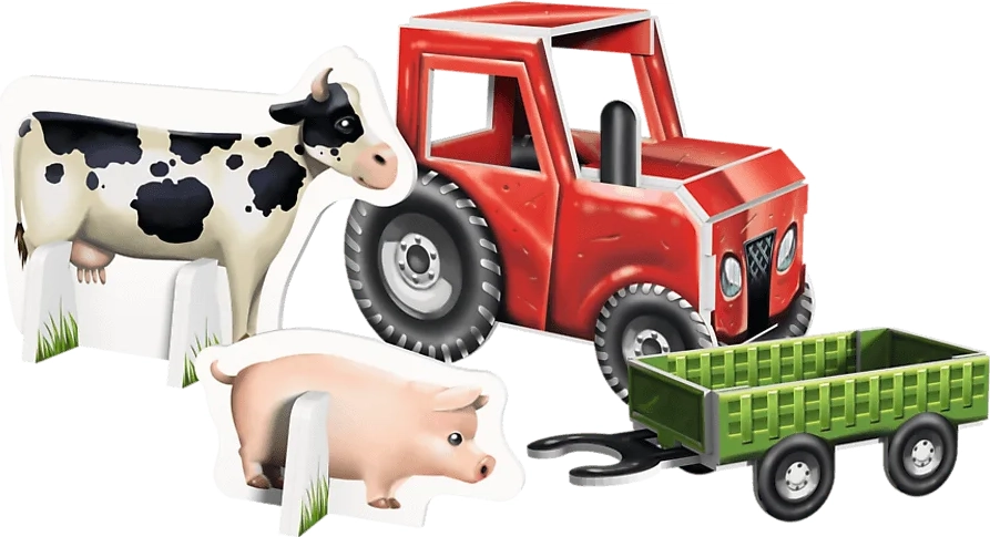 Includes stand-up pieces with a tractor and animals to spark imagination and action. Ideal for themed scenes and role-play.