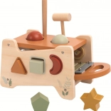 This versatile toy combines three favorite activities into one smart set. The top section serves as a pound bench with two colorful balls and a hammer. On the sides, you’ll find shape-sorting openings that support logical thinking and shape recognition. It also includes a removable xylophone with a mallet for early musical experiments and sound exploration.