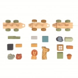This wooden train with a locomotive and two carriages brings kids plenty of fun and learning. Children place colorful pieces onto the pegs on the bases and build their own train, while the cute animals—giraffe, elephant, bear, lion, hippo, and crocodile—go on a trip. The toy supports the development of motor skills, patience, and concentration.