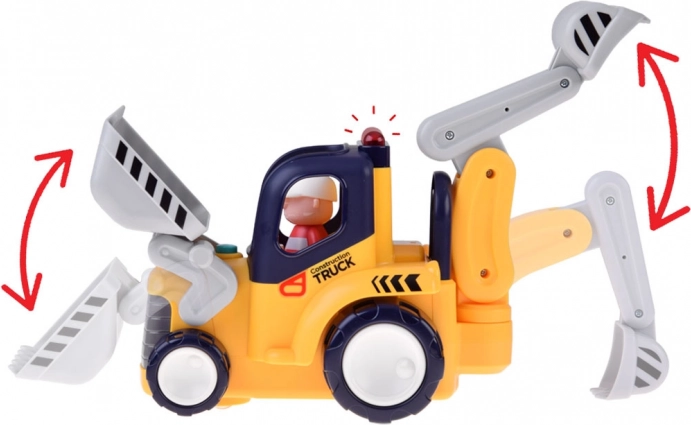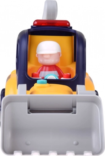 The model offers an automatic mode with a “hit and go” function for independent movement and a remote control mode with a two-direction controller. The moving front bucket and articulated digging bucket trigger realistic sounds. Also included is a driver figure (activates driving with sound and lights) and a small ball for even more play options.