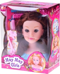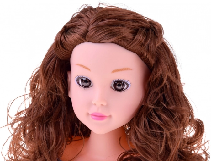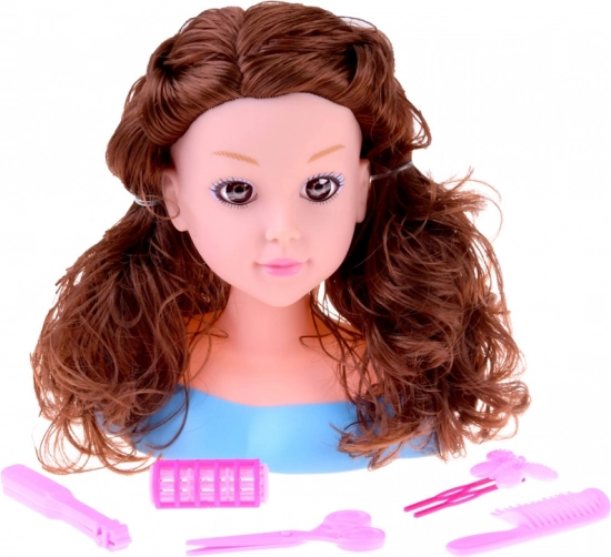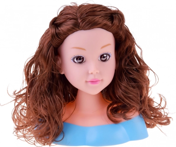 This styling head with long brown wavy hair and detailed makeup is ideal for little stylists. The hair strands are soft and flexible, making them easy to brush, curl, and clip. The stable plastic bust keeps the head in place during styling.