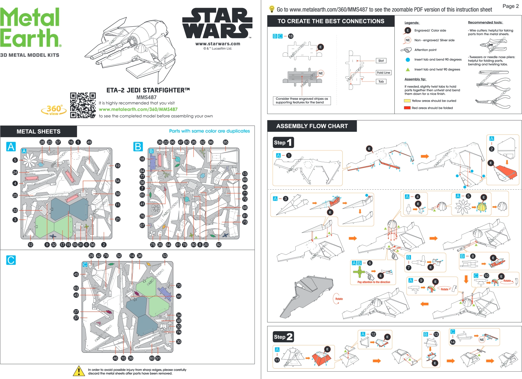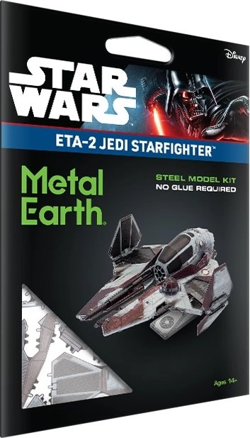 Discover the joy of precise metal modeling and build the legendary Eta-2 Jedi Starfighter from the world of STAR WARS. The METAL EARTH set includes stainless steel sheets with fine laser engraving, resulting in a realistic model with rich details, including wing paneling and cockpit.