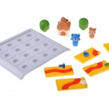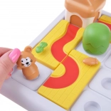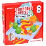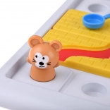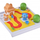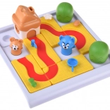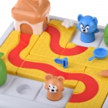 Build the correct route on the gridded board to guide the mouse (and in higher levels also the cat) to the cheese house. In the easier variant, just plan one safe path for the mouse using the available tiles and avoid obstacles. In the more challenging variant, create two different paths — one for the mouse, the other for the cat — each must end at different doors of the house.