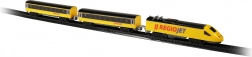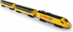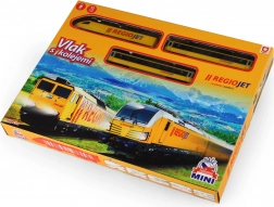 Discover the joy of model trains with the compact RegioJet MINI set. The yellow locomotive with two carriages runs on a modular track that’s easy to assemble from 8 curved and 4 straight pieces. Thanks to the convenient switch on the locomotive roof, control is exceptionally simple, so kids can jump right into play.