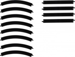 - 1× locomotive, 2× carriage, 8× curved track, 4× straight track
