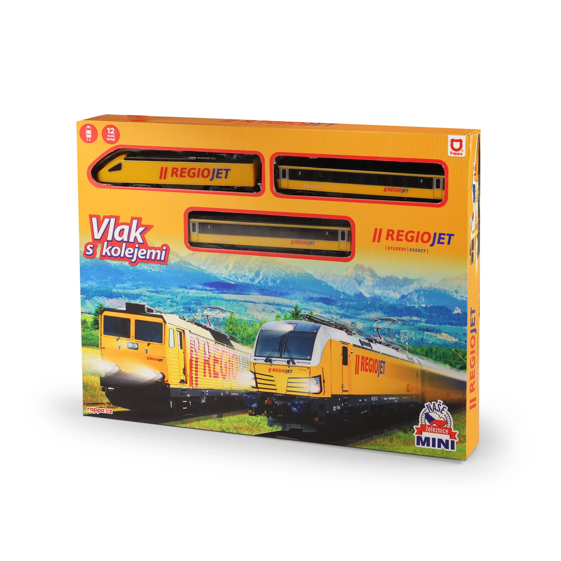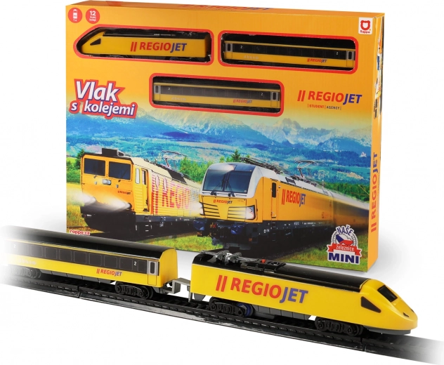 Build your own railway with the authentic RegioJet MINI train in the iconic yellow color. The set includes a battery-powered locomotive, 2 carriages, and a track set to create a circuit up to 96 × 58 cm. Simple ON/OFF control and compatibility with other MINI sets ensure easy expansion and hours of fun.
