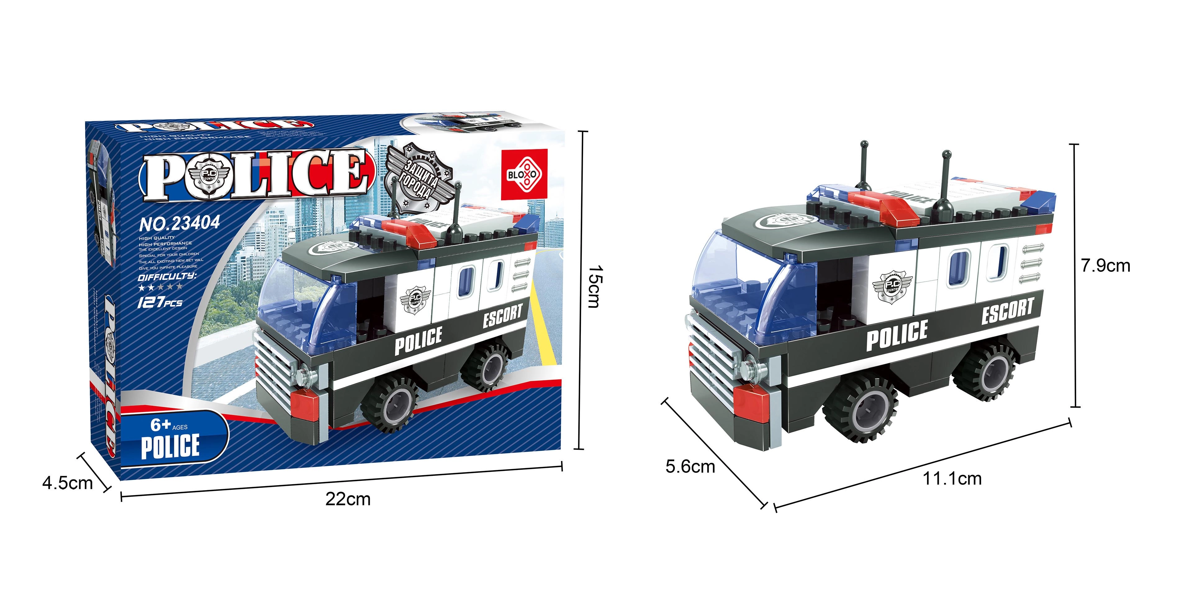 • 106 pieces to build a police car