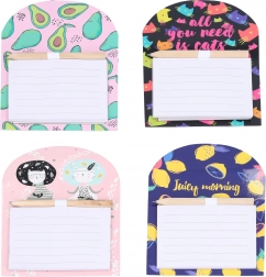 Thanks to the practical holder, the pencil is always within reach, and the strong magnet securely holds the entire set. Choose from a mix of attractive designs (flowers, fruit, animals, and more) that complement any interior.
