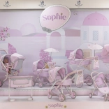 A stylish doll stroller from the gentle Sophie collection delights with quality craftsmanship and romantic pink details. Thanks to the height-adjustable handle with 6 positions (65–90 cm), it perfectly suits taller children and grows with them. Springs in the chassis enable pleasant rocking, while large spoked wheels ensure stability and a smooth ride.