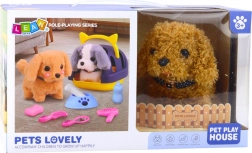 The box includes everything needed to care for the pet: a brush, comb, bowl with bone, bottle, and hair dryer. Children can practice daily pet care routines, developing empathy, responsibility, and fine motor skills.