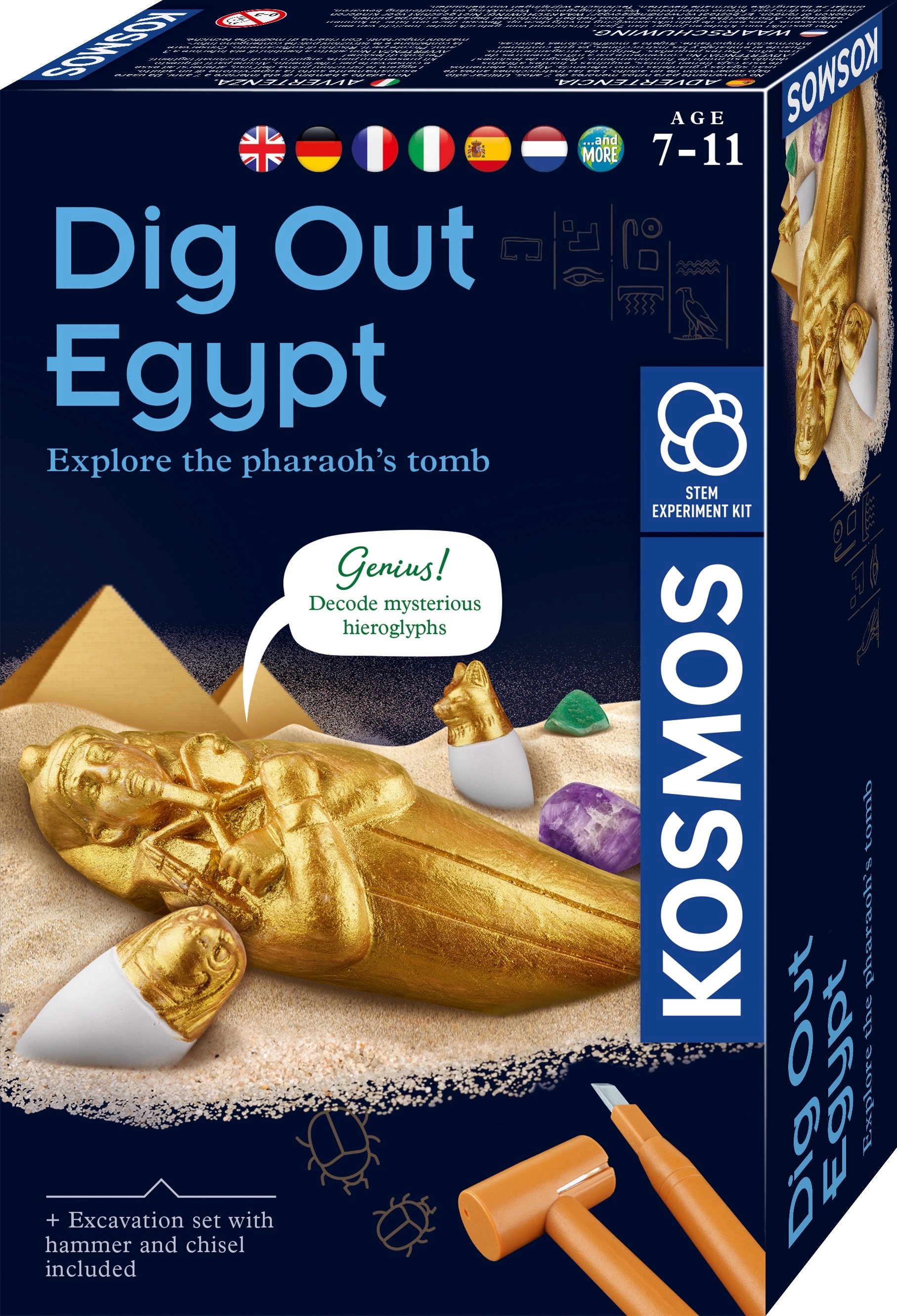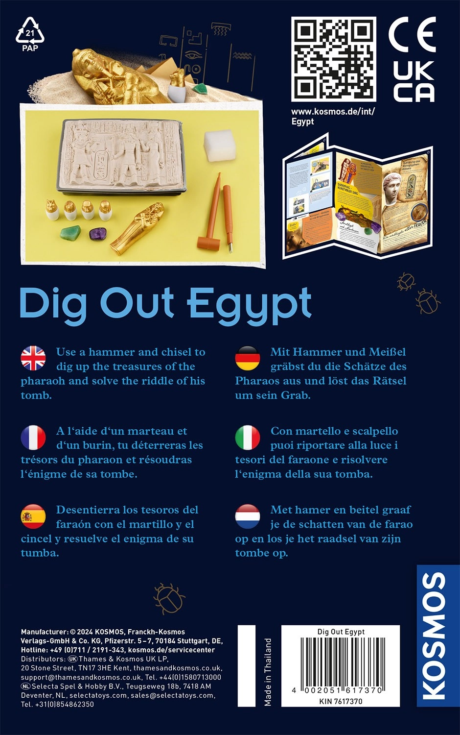With the Kosmos Egyptian Excavations archaeology kit, your children become little archaeologists. Using a chisel and hammer, they will uncover treasures hidden in plaster step by step while learning fascinating facts about ancient Egypt. A practical illustrated manual is available in English with a Czech translation, and you can also easily download the Czech manual via a QR code.