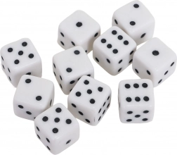 The set includes 10 white dice with black pips for clear readability and universal use.