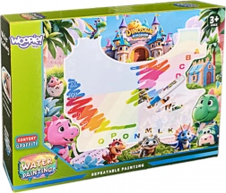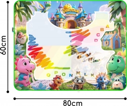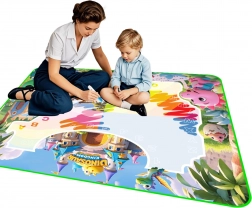 Discover playful painting without stains on clothes and furniture. This large dinosaur-themed water mat supports creativity, imagination, and fine motor skills. You paint exclusively with water—no paints or markers that could make a mess. After a short time, the drawings fade away on their own, so the mat can be used repeatedly.