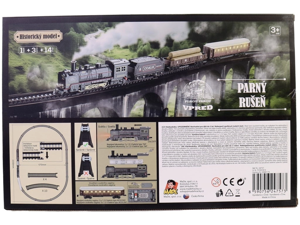 Steam locomotive, tender, passenger and freight car (see images), tracks and accessories