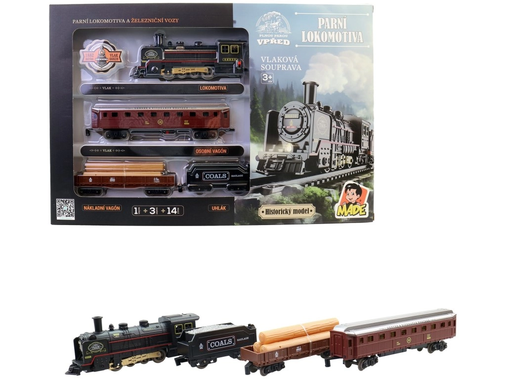 Includes a coal tender plus a passenger and a freight car. Kids can carry passengers and cargo and invent their own stories.