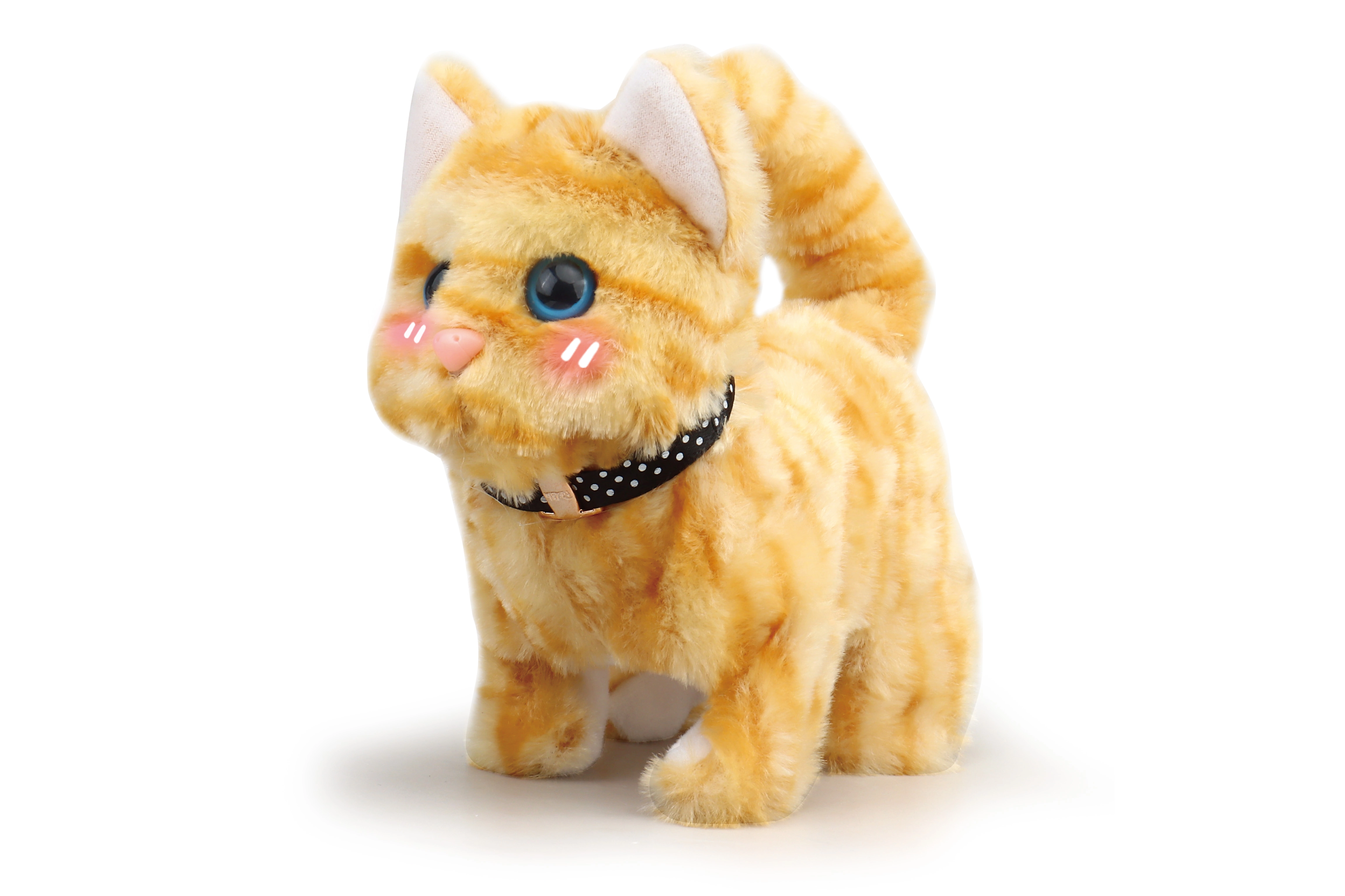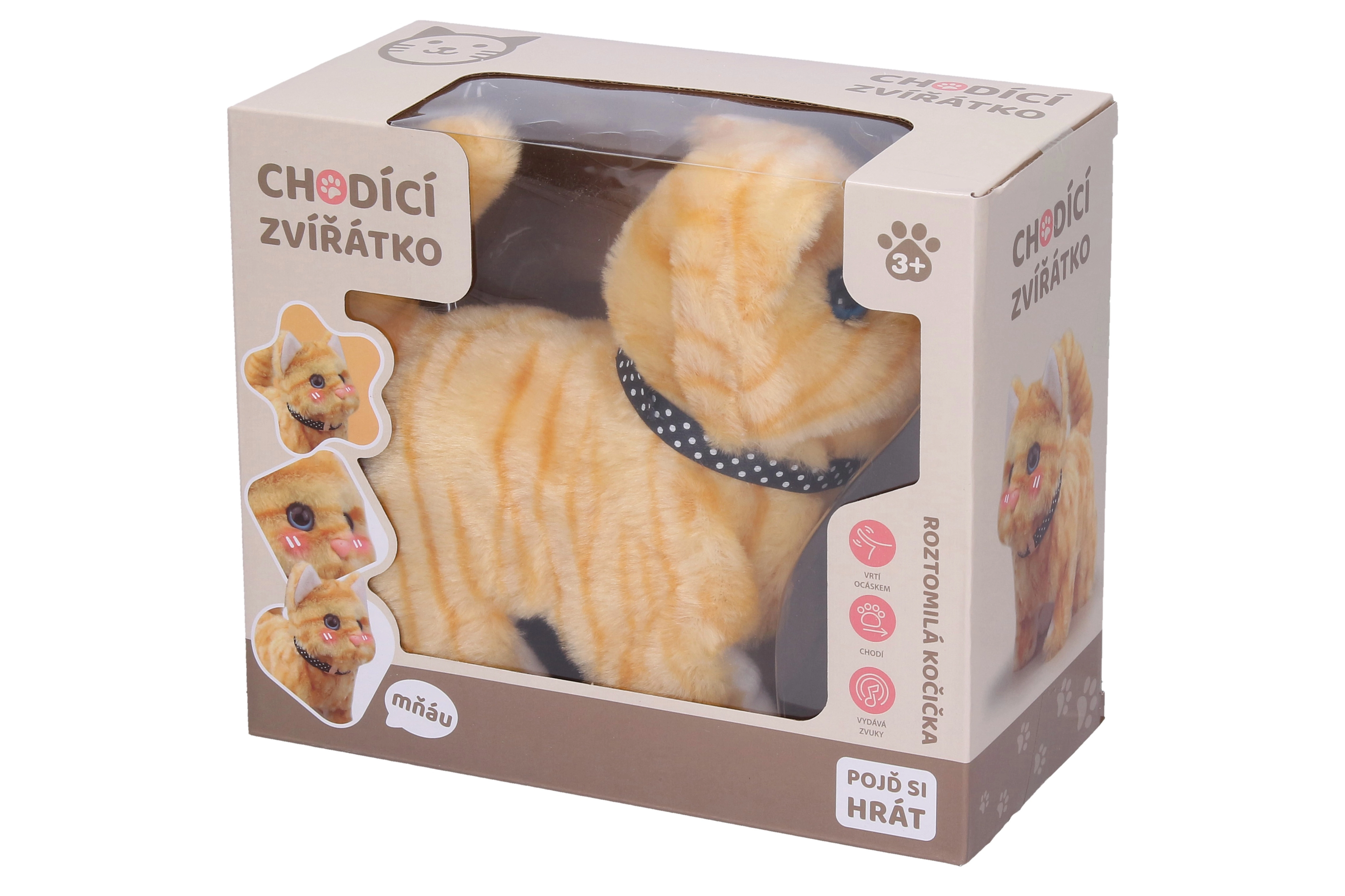 A cute 16 cm walking cat will delight every child. The toy features light and sound effects, can walk, blush, and wag its tail. Easy control with a ON/OFF switch and compact size for fun at home and on the go.