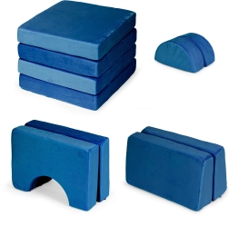 From 10 soft pieces, build a sofa, tunnel, bridge, or fort – it sparks imagination and develops kids’ motor skills and teamwork.
