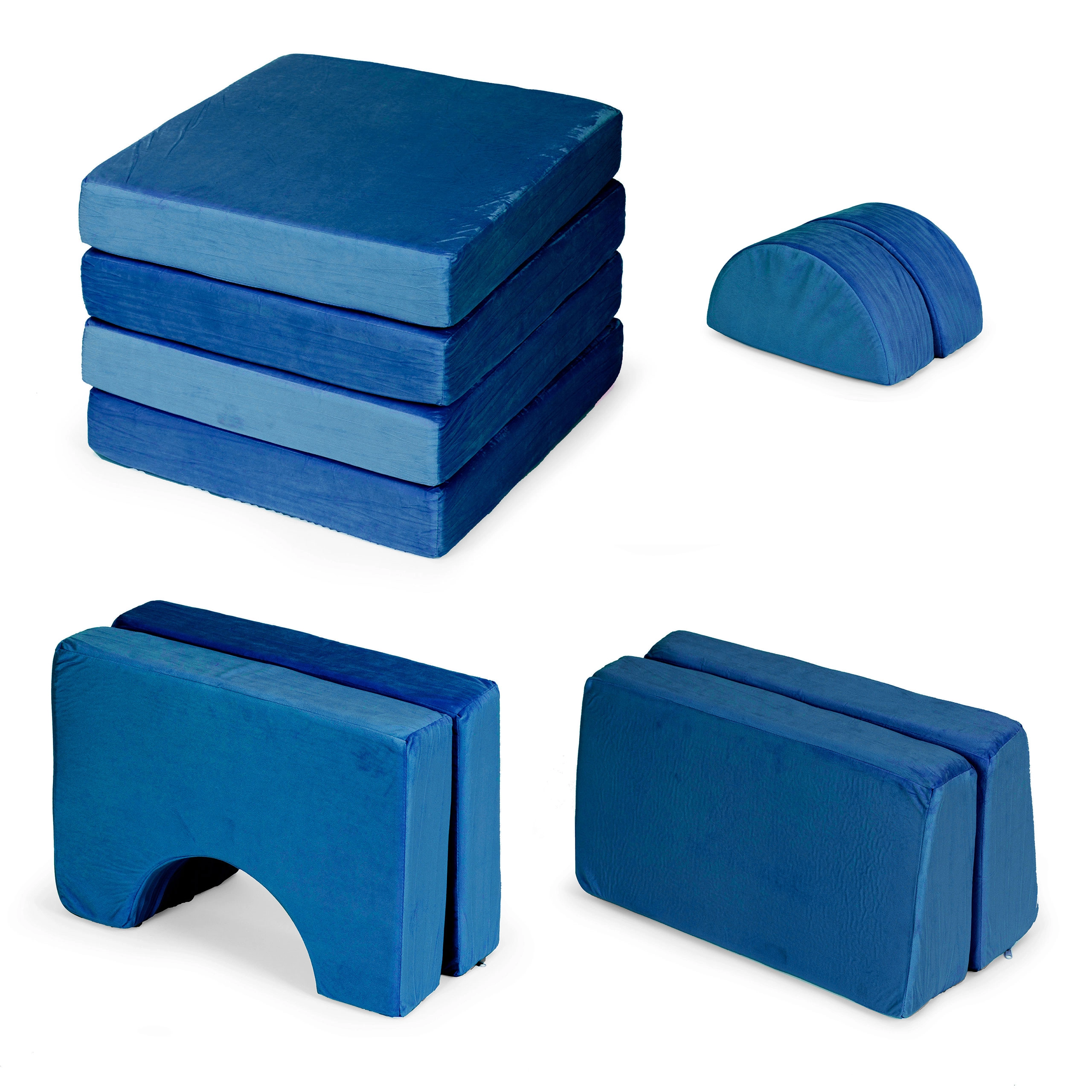 From 10 soft pieces, build a sofa, tunnel, bridge, or fort – it sparks imagination and develops kids’ motor skills and teamwork.