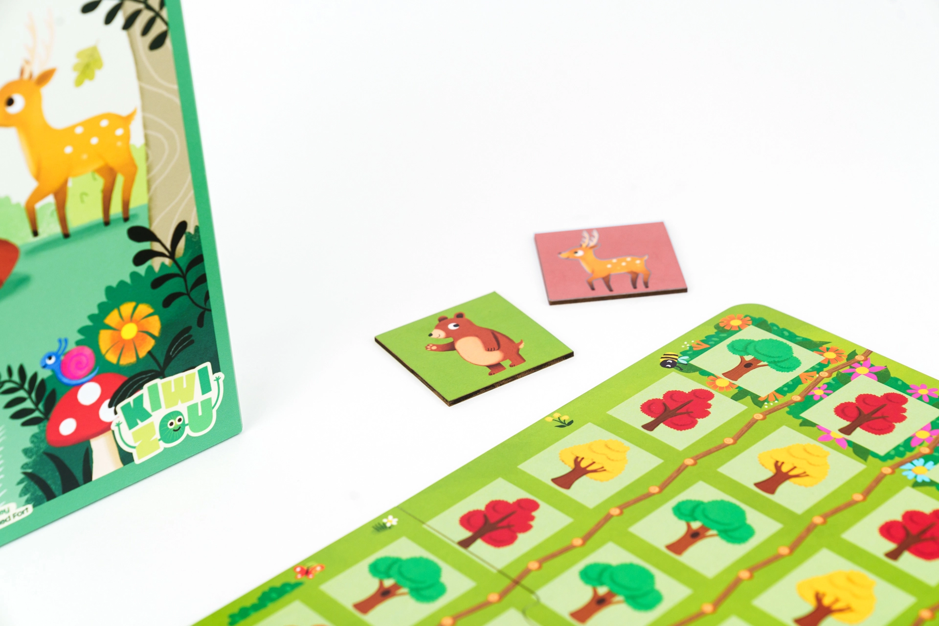 Step into a colorful forest and enjoy a fast, playful racing game for the little ones. Animals move along the track by drawing tokens from a bag, adding both tension and fun. If a food token is drawn, all characters take a snack break and the race slows down. The game develops color recognition, quick reactions, and a healthy competitive spirit at a lively pace. Ideal for 2–4 players, ages 3+, with a playtime of around 5 minutes.