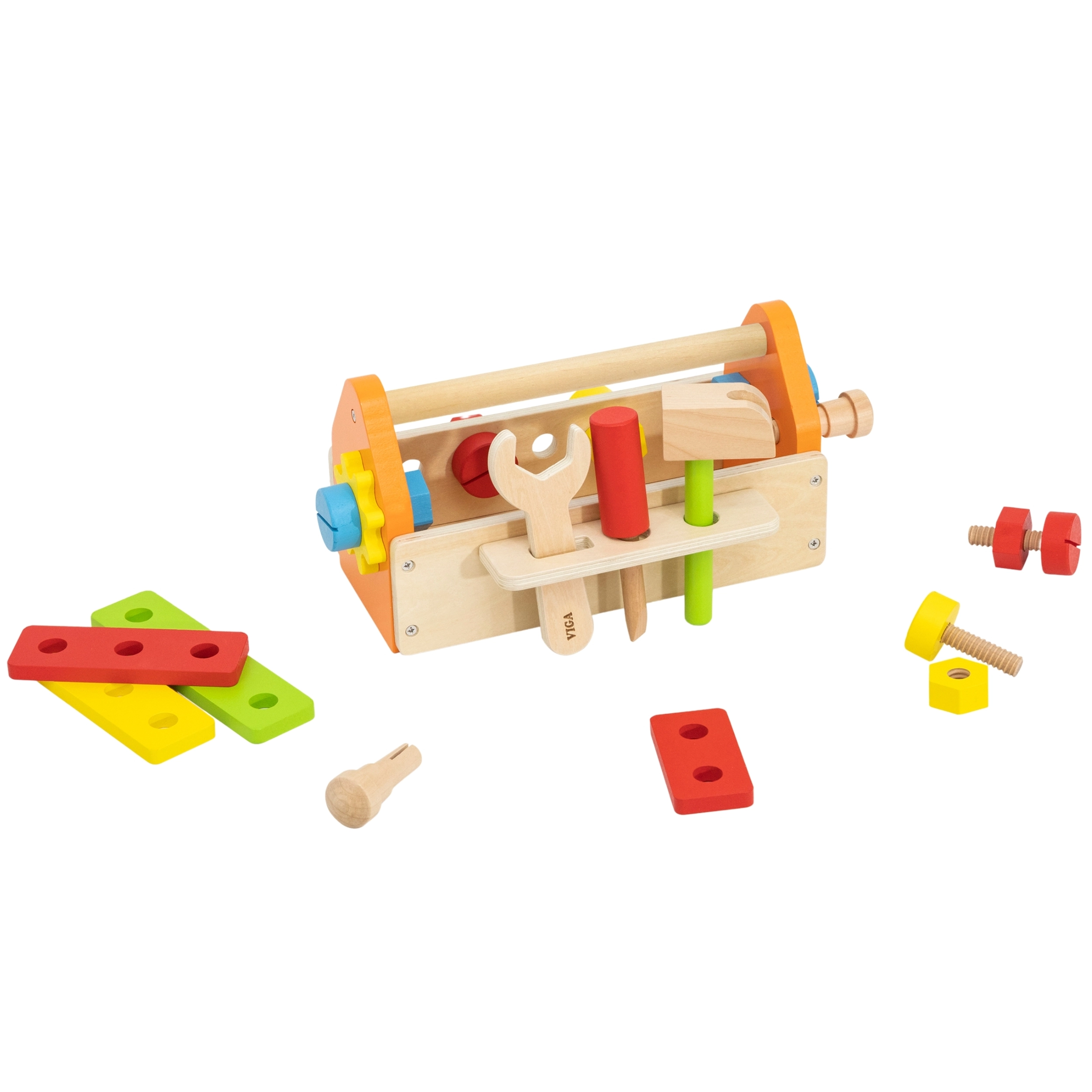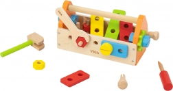 This high-quality wooden toolbox with tools from VIGA's PolarB collection is an ideal choice for little DIY enthusiasts. Children can screw, hammer, and assemble various constructions, learn to recognize tools, and develop technical thinking. The colorful parts invite play while training coordination and patience.