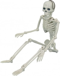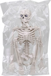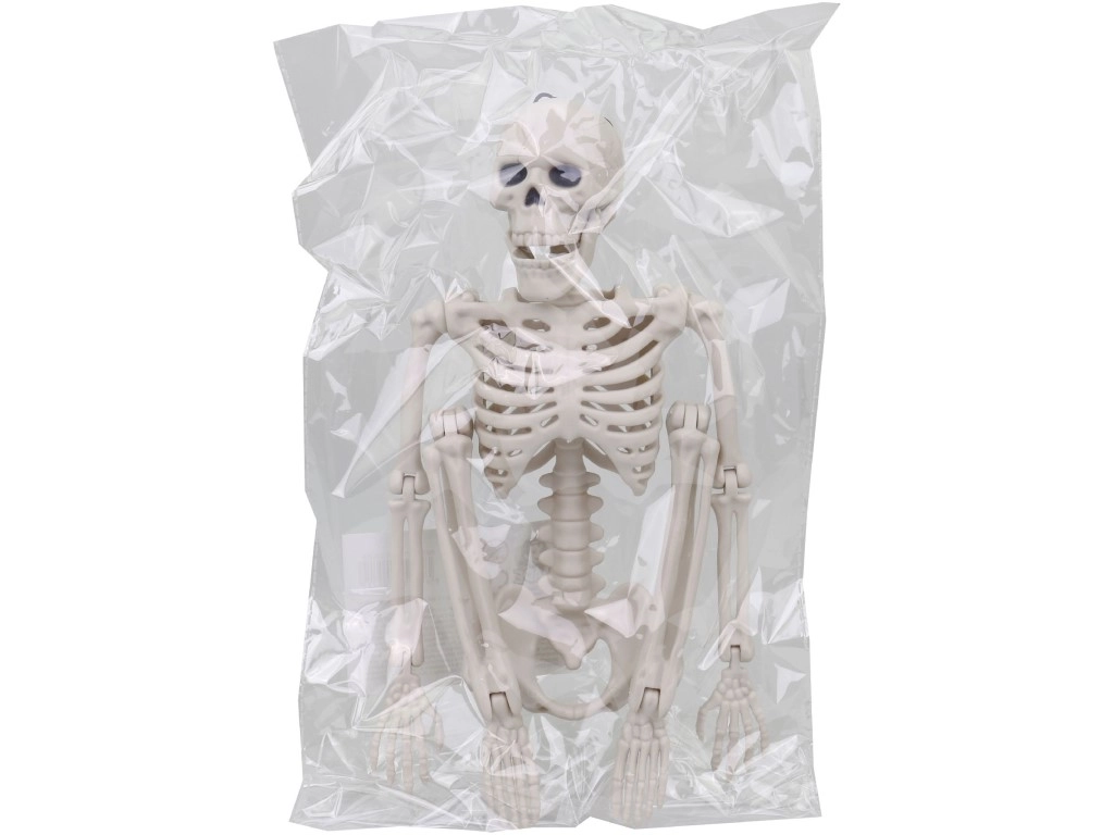A realistic plastic skeleton figurine that will delight both young and old fans of spooky toys. It offers an impressive look, safe design for children aged 3 and up, and practical packaging in a bag.