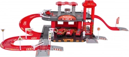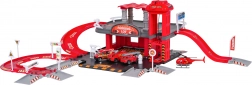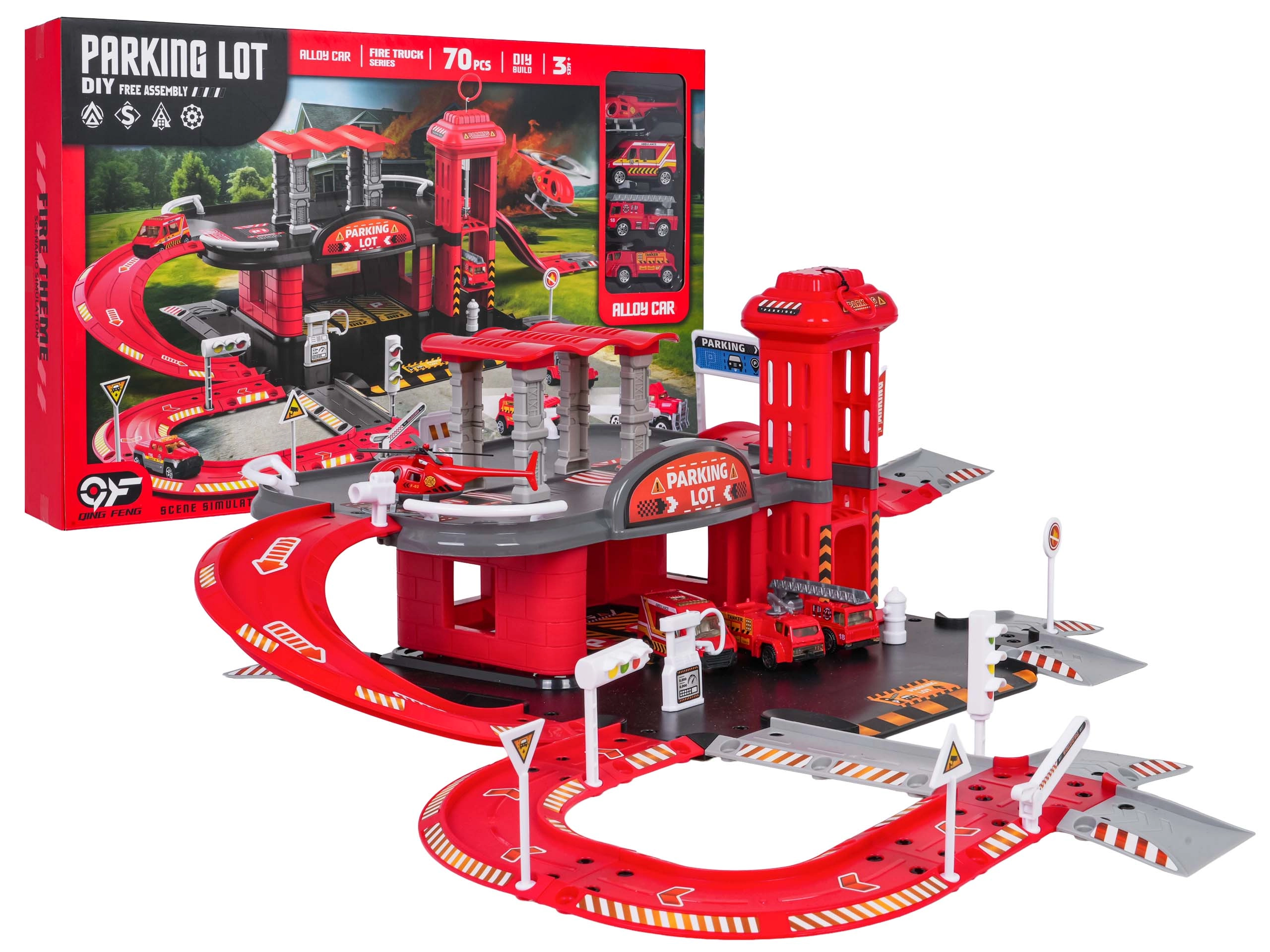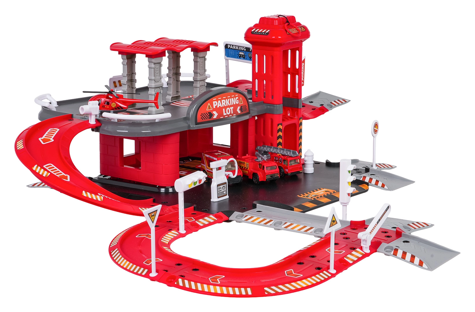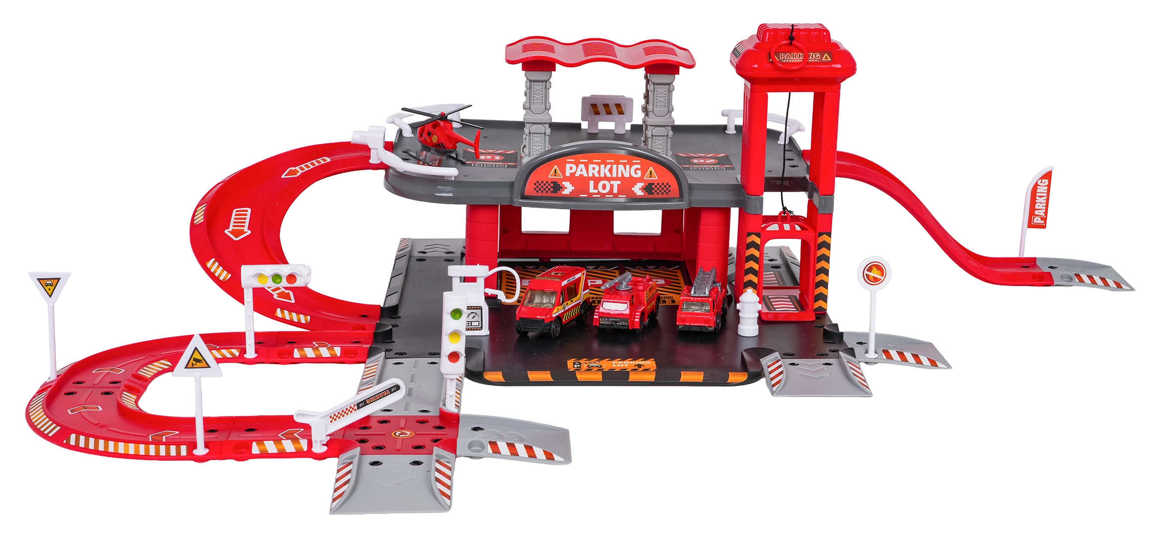 This finely crafted fire station set combines fun with skill development. Kids can refuel at the gas station, drive along the road, lift the vehicle to the upper level with the manual elevator, and park in designated spaces. From the top level, vehicles return by elevator or speed down the spiral ramp.