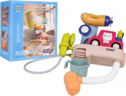 This kids’ bath set with shower and accessories brings plenty of games and fine-motor practice to the tub. Thanks to reliable suction cups, you can easily attach it to the bathtub or smooth tiles. The electric shower (battery-powered, 3 × 1.5 V, not included) draws water directly from the tub—just submerge the lower part of the module and press the button.