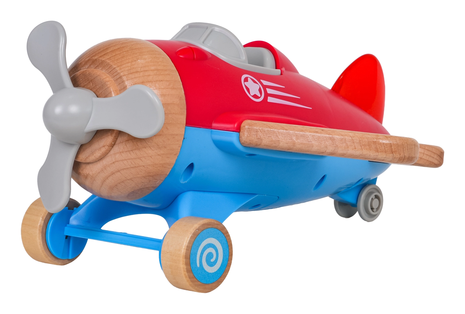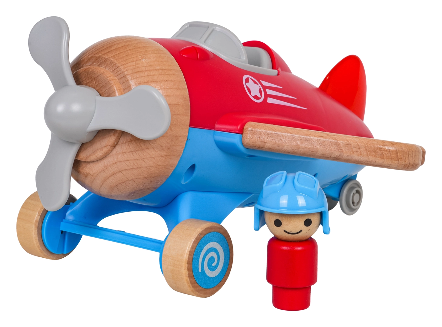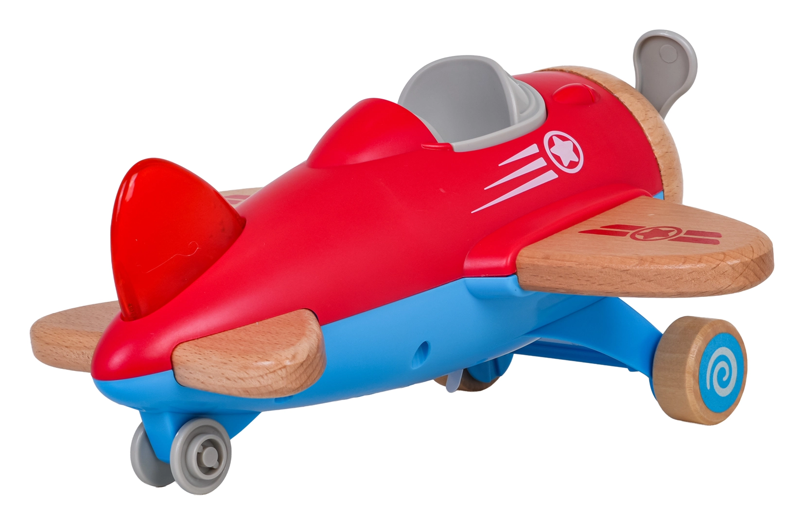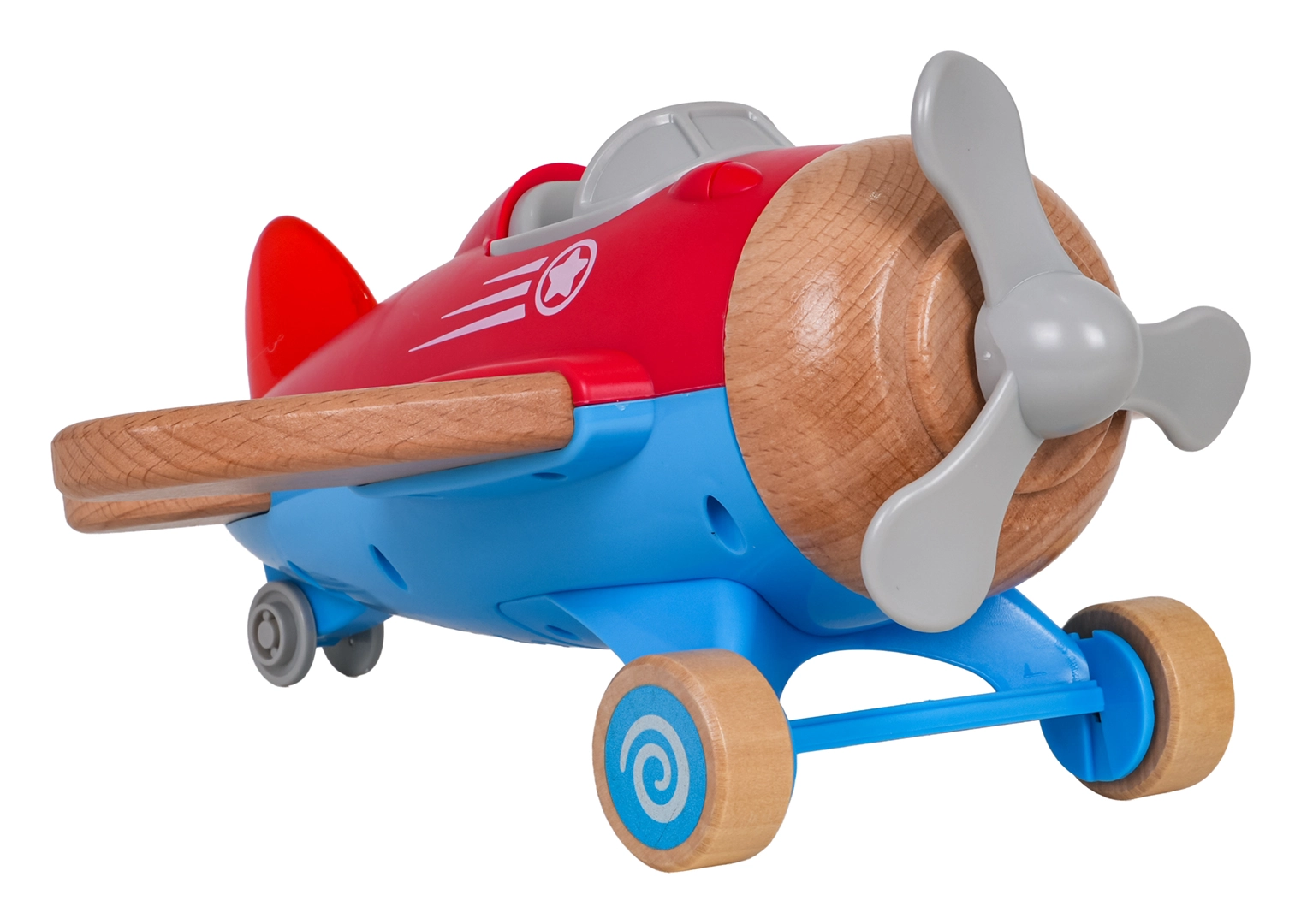 This red-and-blue airplane delights kids with realistic effects and the pleasant tactile feel of wood. It is designed with an emphasis on safety and durability, featuring rounded edges, a smooth surface, and a sturdy build suitable for everyday play.