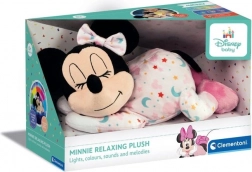 The super-soft plush Minnie from CLEMENTONI BABY helps calm children and makes falling asleep easier thanks to a combination of chromotherapy and gentle melodies. It offers white noise, classical music, soothing tunes, and a heartbeat sound, while glowing with colored lights with changing intensity. The cute design with pajamas featuring a night motif makes it an irresistible bedtime cuddle companion.