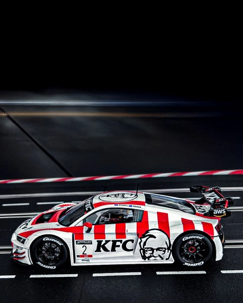 The Audi R8 LMS GT3 evo II from the Carrera Evolution series is an ideal choice for all slot car enthusiasts. Thanks to precise workmanship and stable handling, you’ll enjoy dynamic races with a high level of realism. Functional lighting highlights the car’s details and delivers a great impression even when driving at dusk.