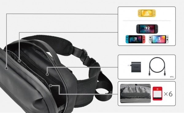 The main compartment protects your console from scratches and minor bumps, while the handy exterior pocket keeps accessories like Joy-Con controllers, game cards, cables, or headphones always at hand. The adjustable shoulder strap and top handle provide two carry styles — over the shoulder or in hand.