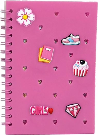 The TOYS INN notebook in pink offers a great blend of playful design and practical execution. The silicone cover is durable and pleasant to the touch, while six removable badges let you change the look freely and express your own style. Thanks to the spiral binding, pages turn easily and the notebook can be laid completely flat for comfortable writing and drawing.