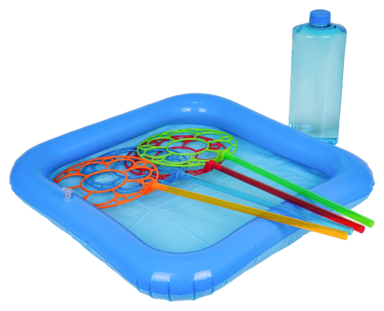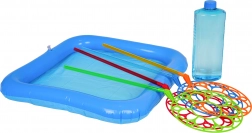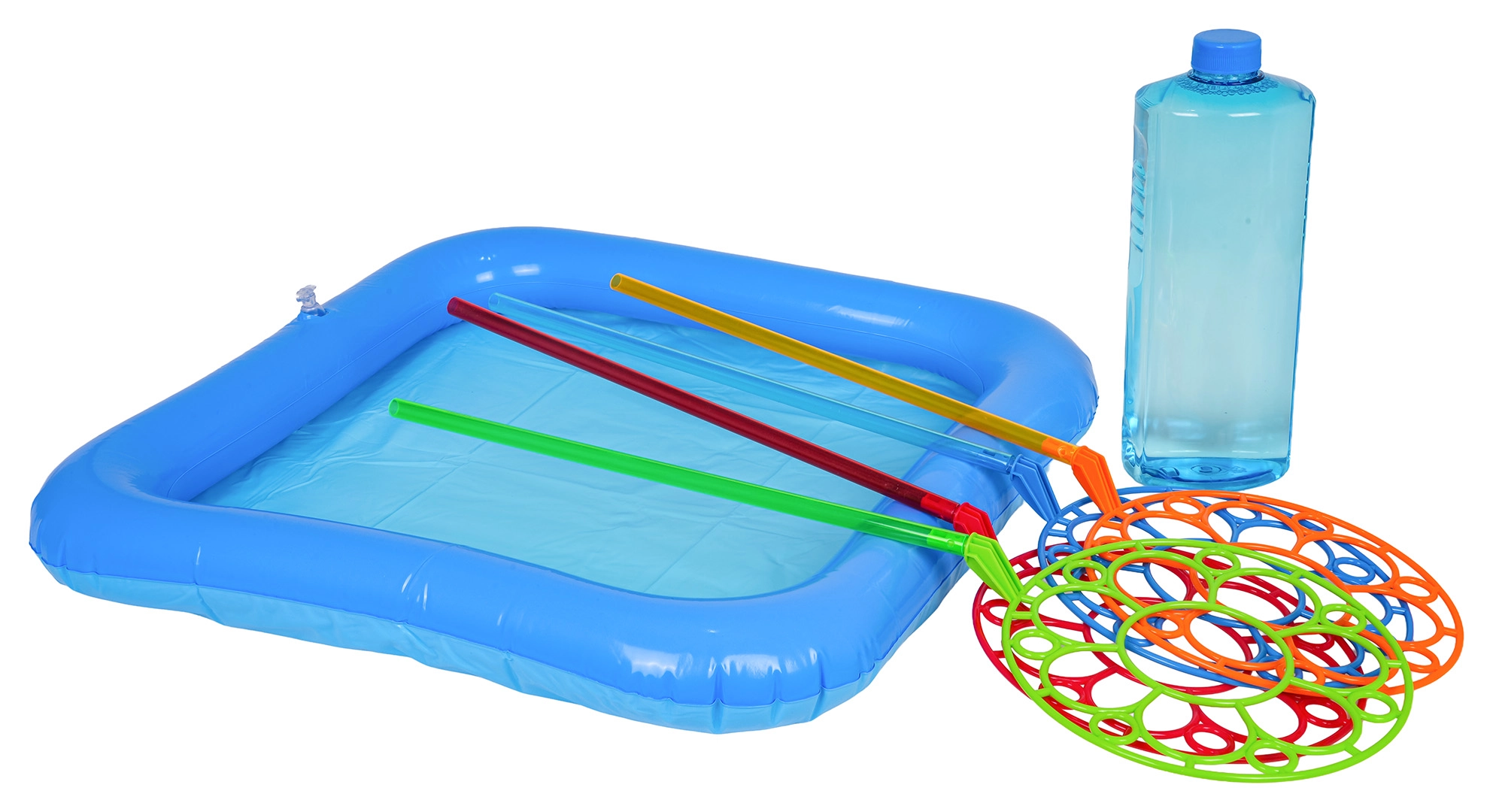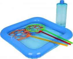 With this set, kids can easily create gigantic soap bubbles. Simply pour the solution into the inflatable tray, dip one of the rings, and blow—smiles and joy guaranteed. Ideal for family events and playtime with friends in the fresh air.