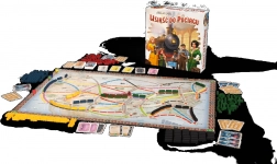- Game board with a map of North America; 240 colored train cars; 110 train car cards; 33 ticket cards; longest route bonus card; 5 scoring tokens; rulebook