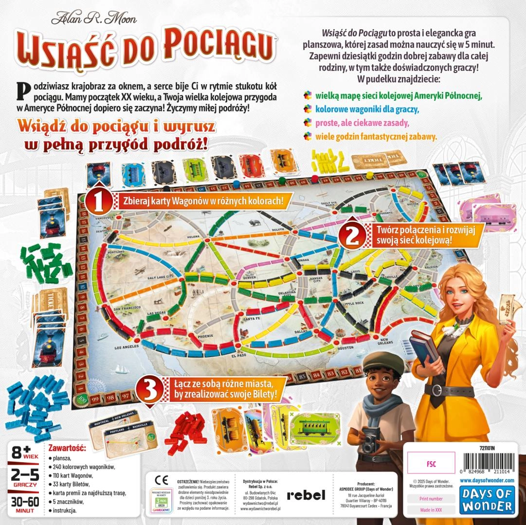 The popular family game All Aboard the Train combines simple rules with clever planning. Each turn you choose between drawing cards, building routes, or gaining tickets—and you’ll compete for the best city connections across North America.