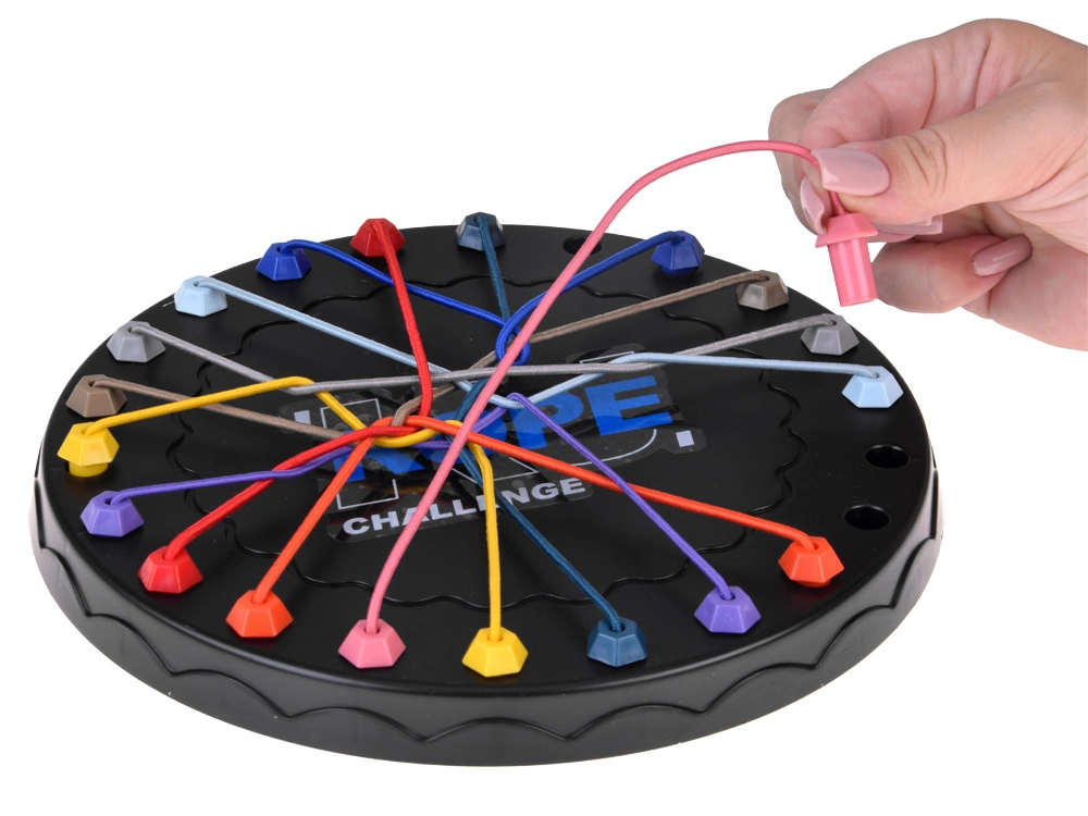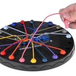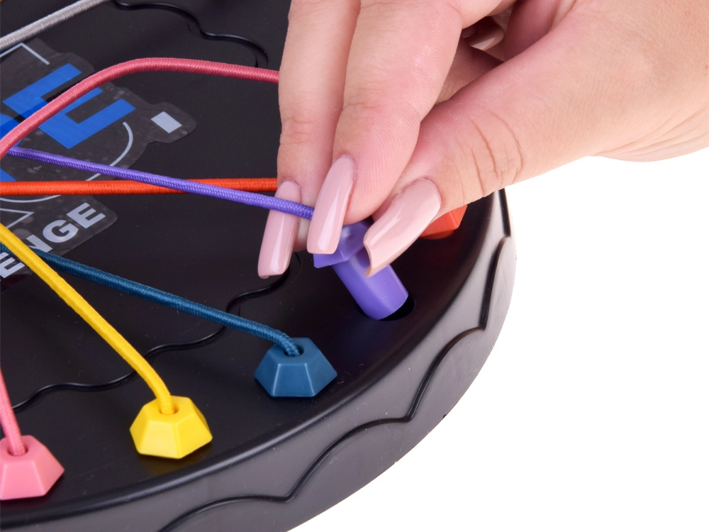 A clever logic game with elastic strings on a circular board that trains logical thinking, observation, patience, and fine motor skills. Using colorful strings and pegs, you create various patterns and then untangle them step by step according to the chosen challenge. Ideal for kids and adults, for solo play or family fun.