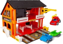 Discover a realistic auto service for kids featuring two service bays, ramps, a functional elevator and crane for lifting vehicles. Opening doors and plenty of moving parts ensure hours of fun. Includes 2 cars, 1 trailer, 2 containers for oil and used parts, and 34 stickers to customize the scene as they imagine.