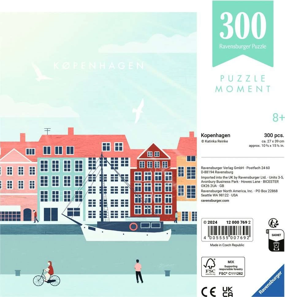 Discover the charm of Copenhagen in a compact format that fits any table. Thanks to precise die-cutting, durable cardboard, and the brand’s signature finish, the pieces fit perfectly and hold firmly. This 300-piece puzzle is a great choice for beginners and experienced puzzlers who want to complete a beautiful motif quickly and enjoy the satisfaction of a job well done.