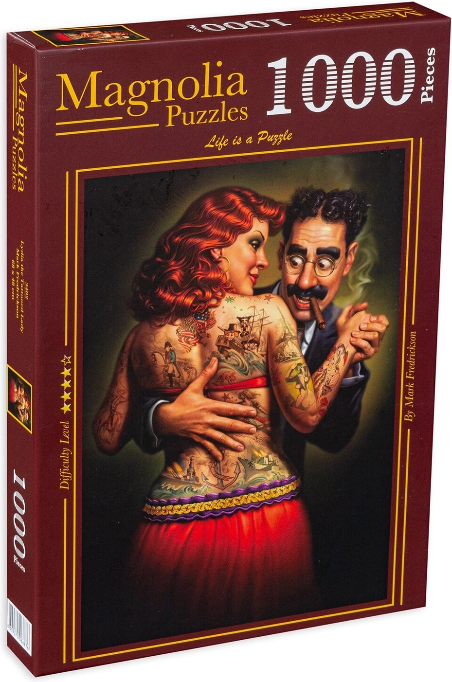 Take some time for yourself with the elegant MAGNOLIA puzzle featuring LYDIA — a tattooed lady. Thanks to 1000 sturdy pieces and precise printing, assembly is smooth and the result impressive. Once completed, the picture measures approximately 48 × 68 cm, making it perfect for framing and display.
