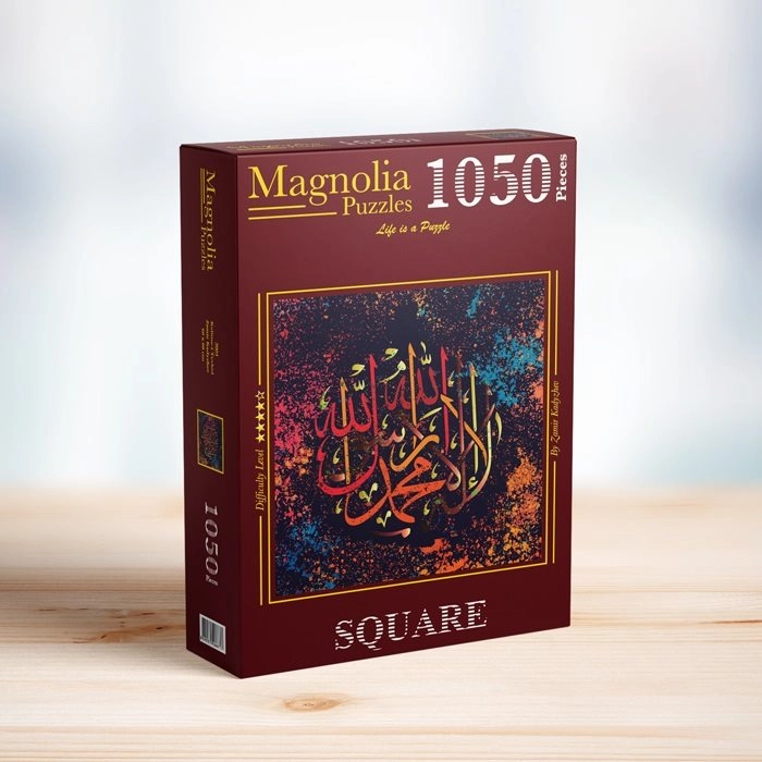 Enjoy relaxation and focus with a high-quality 1050-piece puzzle featuring the Kelime-i Tevhid motif. The square format of approximately 60 × 60 cm when completed is ideal for framing and interior decoration.