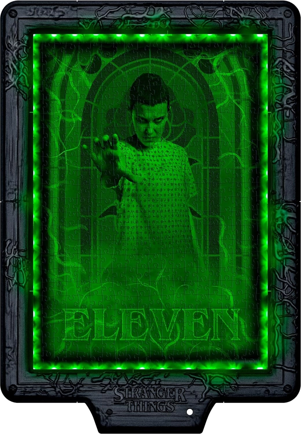 Step into the dark atmosphere of STRANGER THINGS with a glowing metamorphic puzzle that changes with RGB LED light. This 520-piece jigsaw reveals different images as the light color changes and offers a unique experience from the world of the Upside Down.