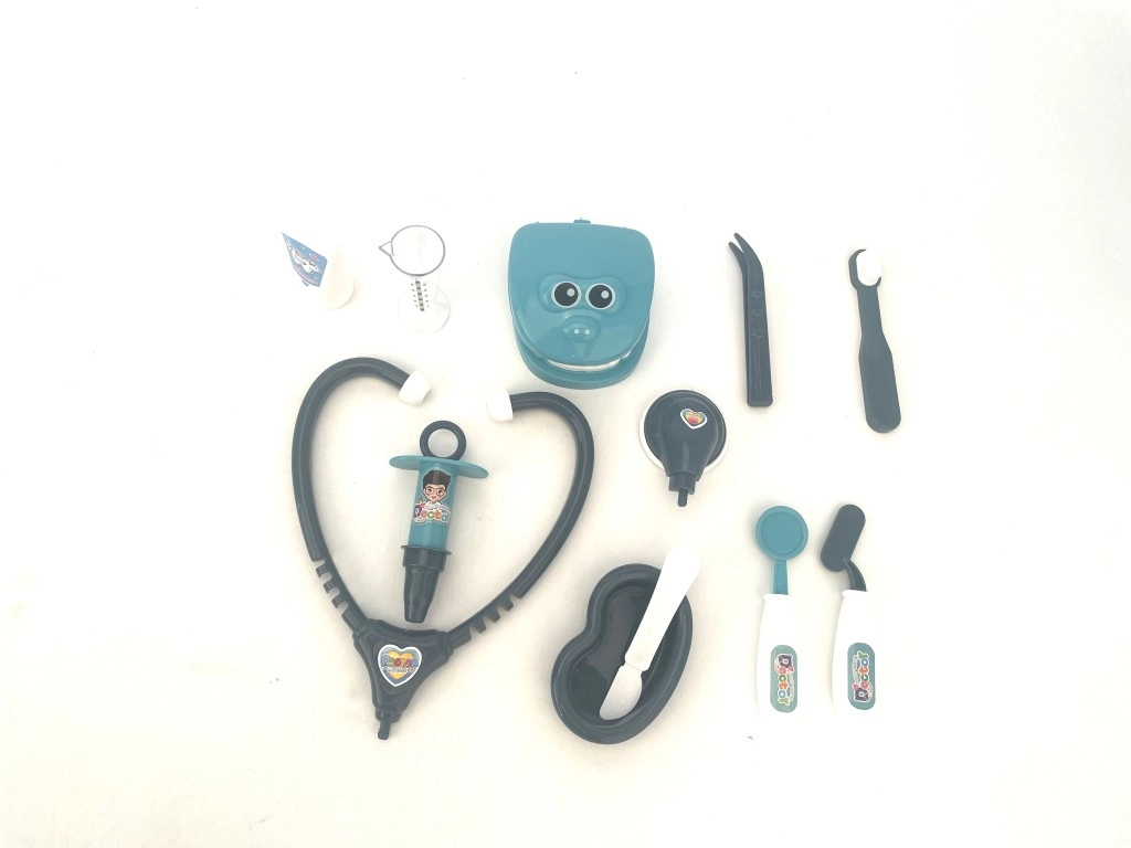Turn make-believe appointments into a fun adventure! This dentist doctor set for little dentists includes everything they need – a mirror, forceps, toothbrush, tooth model, and more accessories. It promotes oral care, helps reduce fear of the dentist, and develops fine motor skills and imagination. Available in blue or green.