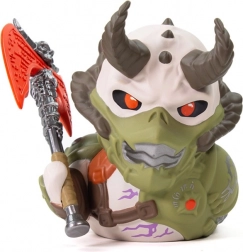 An officially licensed TUBBZ collectible duck portrays the fearsome Marauder from the DOOM universe in a unique duck style. Detailed olive-green armor, red eyes, prominent horns, and the iconic battle axe make this an eye-catching display piece for fans of FPS classics.