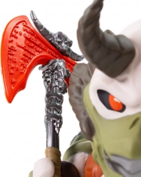 A translucent red double axe with a bone handle adds dynamism and game-accurate detail to the figure.