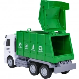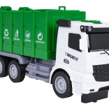 This realistic garbage truck will delight every young fan of work vehicles. Its robust build, attention to detail, and rubber tires deliver a smooth, dynamic ride across different surfaces. On the cab roof, you’ll find a control panel that triggers engine start, driving, reversing and an energetic melody, accompanied by flashing lights.