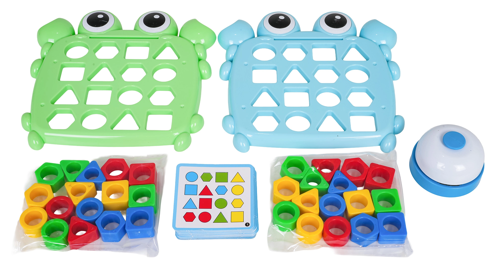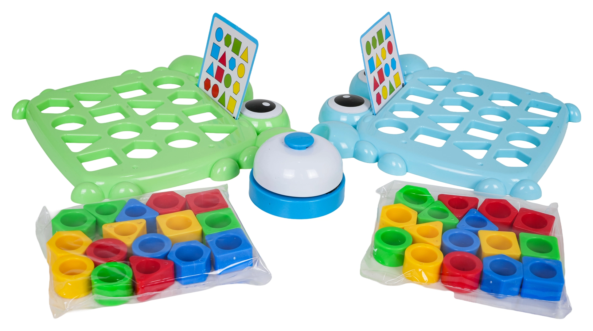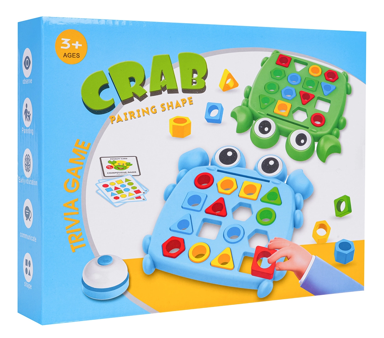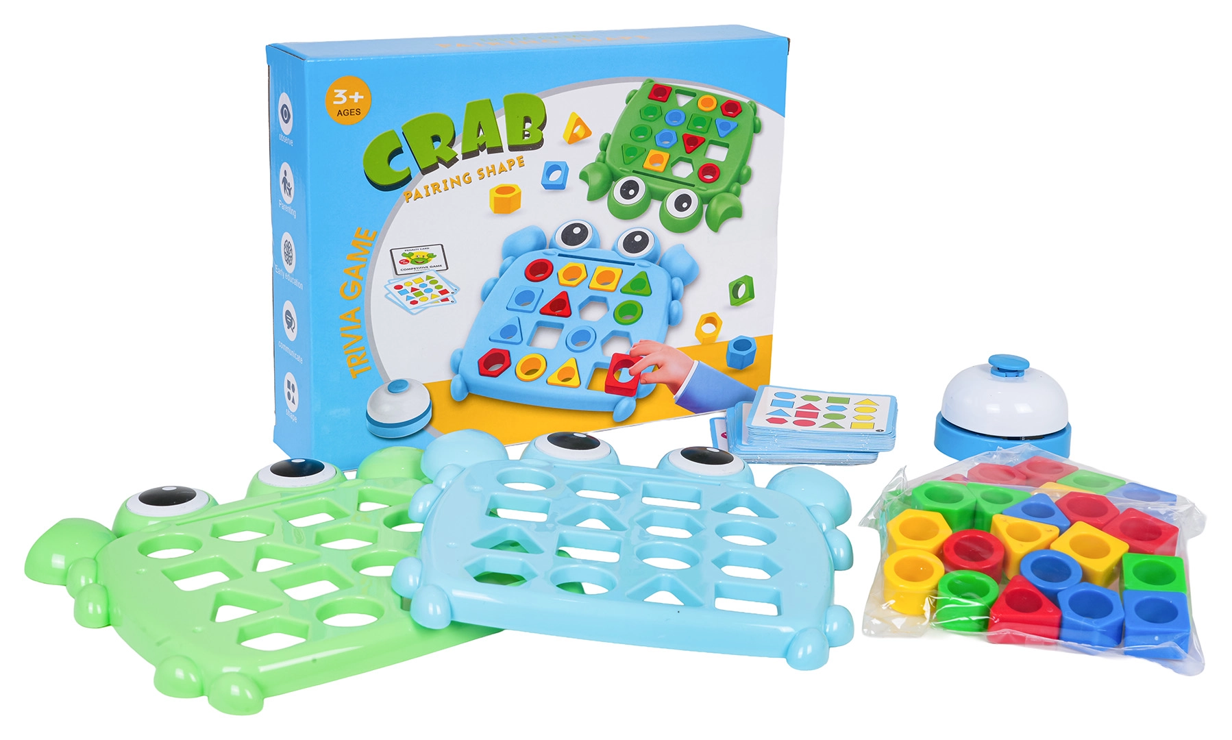 This catchy kids’ game with a crab theme blends learning and competition. Children pick a pattern card, insert colorful shapes into the board’s slots, and practice logic, observation, and hand–eye coordination. In two-player mode, speed decides it—whoever completes the pattern first and rings the bell takes the card.